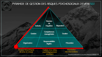 À l’aide de la pyramide de gestion des risques psychosociaux, vous apprendrez à établir votre camp de base pour maintenir votre zone de saine performance, à ériger des stratégies de gestion efficaces et basées sur la norme ISO 45003 pour esquiver la montée du stress professionnel et un arrêt de travail.